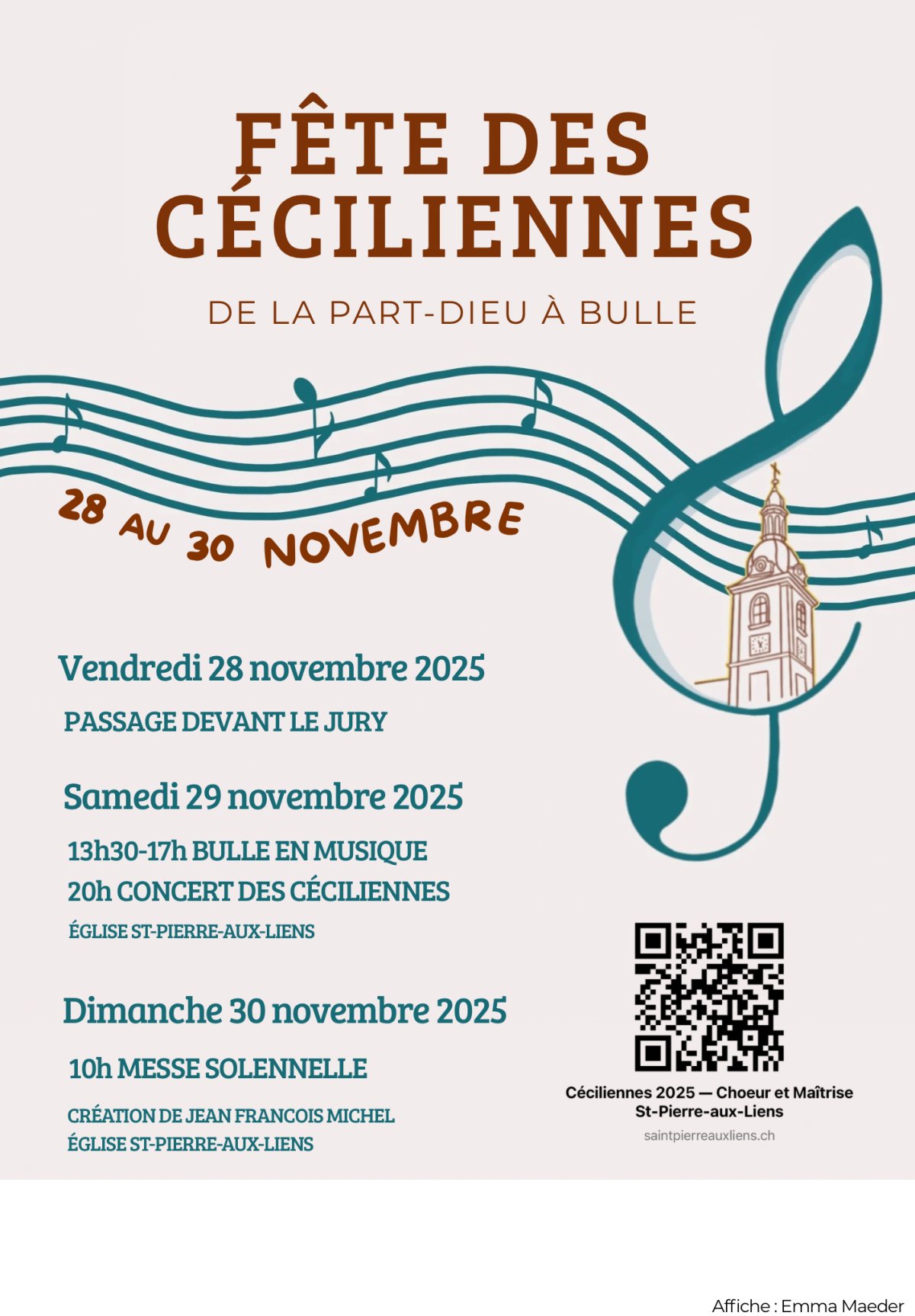 La Fête des Céciliennes est une occasion de rassembler les 10 chœurs membres de l'Association des Céciliennes de la Part-Dieu. Sa prochaine édition se déroulera au Centre-Ville de Bulle, du 28 au 30 novembre 2025.