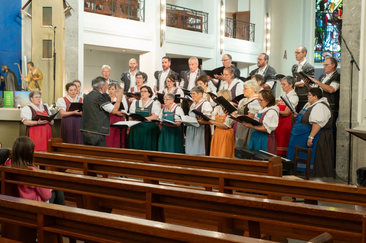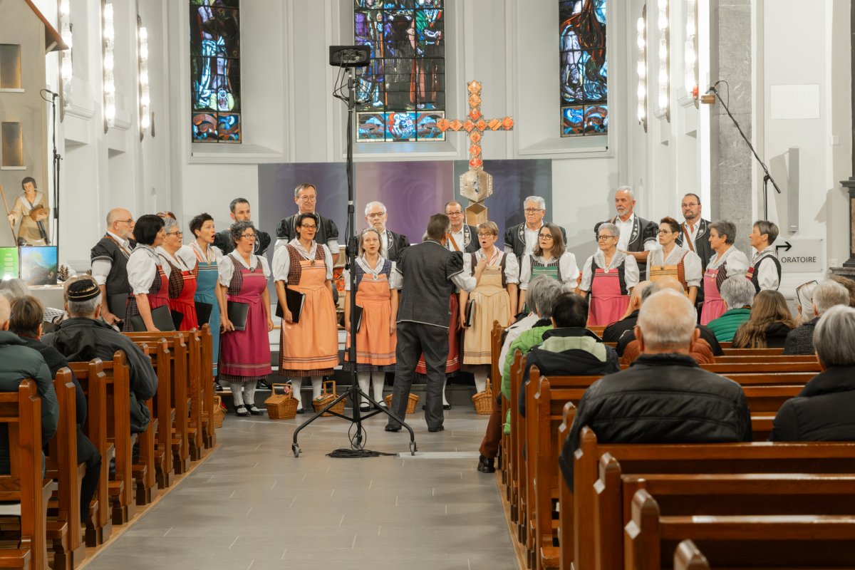 Point d’orgue de la fête, la messe solennelle réunira les quelque 250 chanteuses et chanteurs. Cette célébration verra la création de la « Mècha a Nouthra Dona dè Konpachyon », œuvre commandée pour l’occasion au compositeur fribourgeois Jean-François Michel, sur une traduction en patois du texte liturgique par André Pauchard. Un quintette de cuivres accompagnera l’ensemble des sociétés rassemblées pour ce moment majeur.